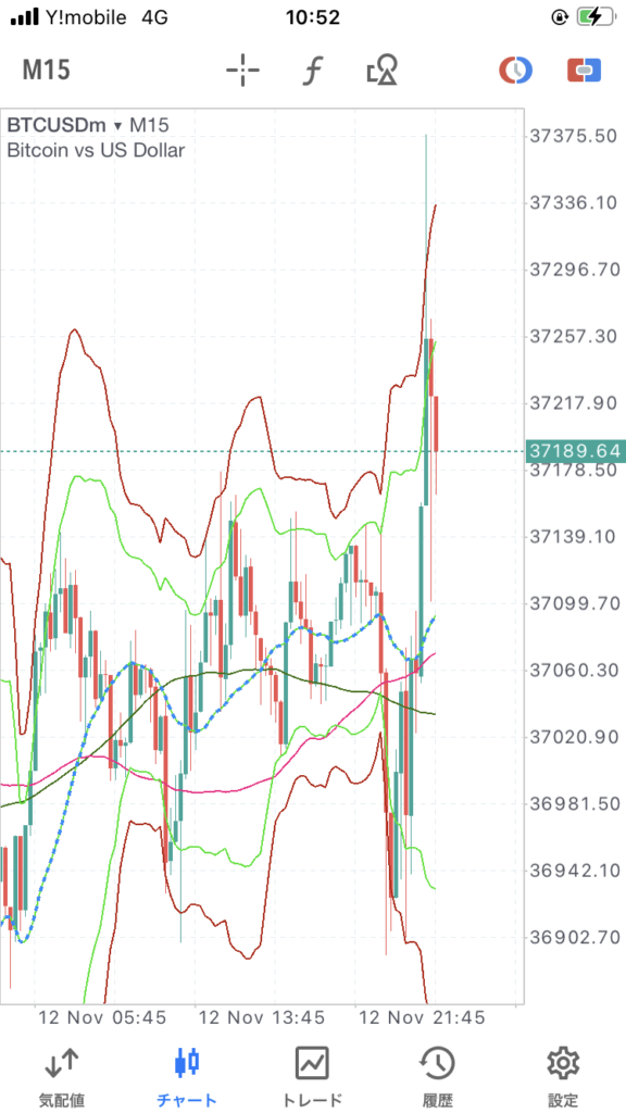 BTC予測の更新 2023年11月13日 by genesabroo 昨日から上げるかもと伝えてたBTCです。 今朝から上下動が活発になり上に抜けました。 全戻しなければ、まだ上がるかもですね。 でも、上がる前に一旦結構下がるので 低ロットですが心臓に悪いです。