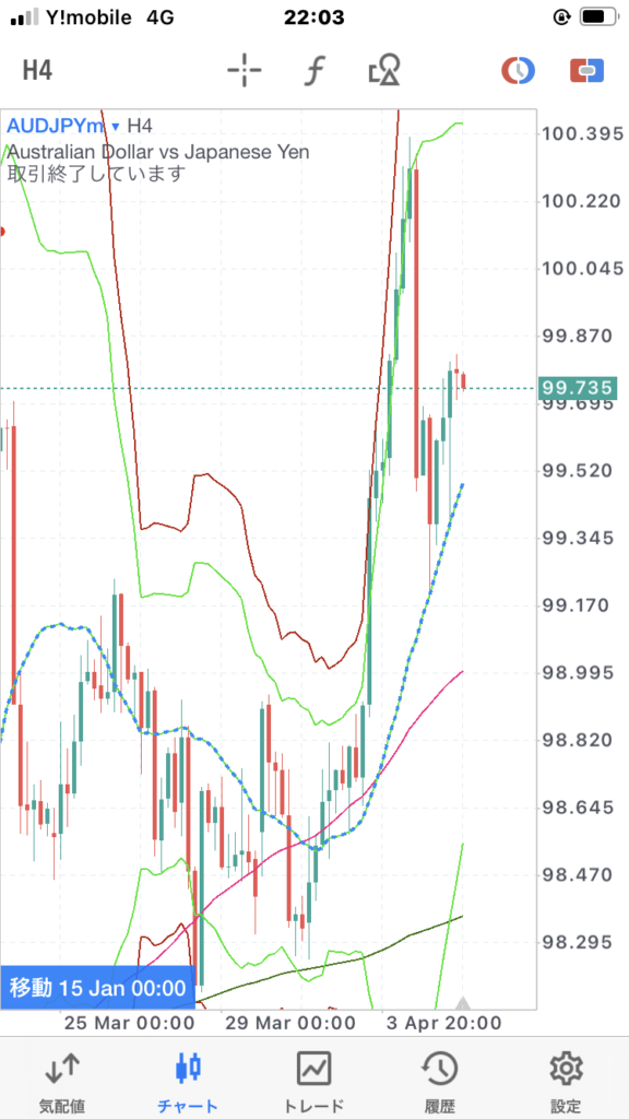 上げの後の陰線も4時間足のMAで抵抗してます。